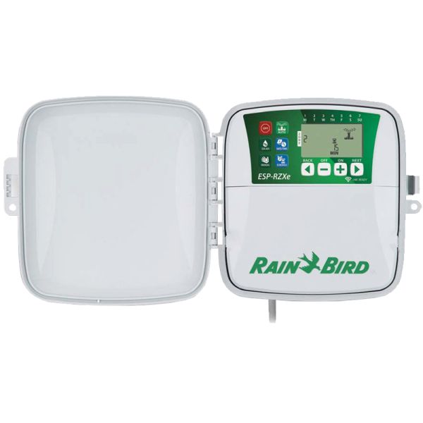 Exteriérová ovládací jednotka RZXe je flexibilně programovatelná, dimenzovaná na 6 sekcí, ideální pro širokou škálu aplikací - včetně soukromých zahrad a menších závlahových systémů na komerčních plochách. Programování jednotlivých sekcí umožňuje samostatné nastavení režimu každého ventilu, také dobu zavlažování a štartovací časy. Na každou sekci lze nastavit také týdenní režim. Velký LCD displej zobrazuje všechny programové parametry jednotlivých sekci současně. Jednoduché, snadno pochopitelné a intuitivní uživatelské prostředí. Čtyři typy závlahových režimů: podle sekcí, manuálně nastavení, dny v týdnu, sudé / liché dny a interval zavlažování 1-14 dní. Funkce Contractor Rapid Programming při prvním nastavení automaticky zkopíruje naprogramované parametry zóny 1 do dalších sekci. Uložení a obnovení naprogramovaných údajů funkcí Contractor Default. Možnost ignorování čidla srážek. Jednotka je WiFi ready - tedy podporuje připojení na internet pomocí WiFi sítě (po dokoupení adaptéru). Díky tomu budete moci ovládat svou závlahu na dálku pomocí chytrého telefonu / tabletu (aplikace je zdarma pro Android, jakož i iOS). Jednotka s WiFi modulem je schopna stahovat údaje o počasí z internetu a tím přesněji zavlažovat.