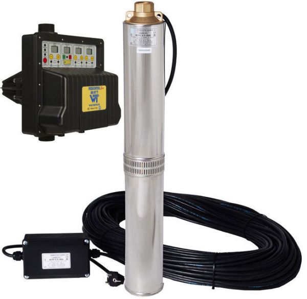 Kompletný set EVO obsahuje v balení: frekvenčný menič Watertech presscontrol EVO a ponorné čerpdlo VODOLEY.